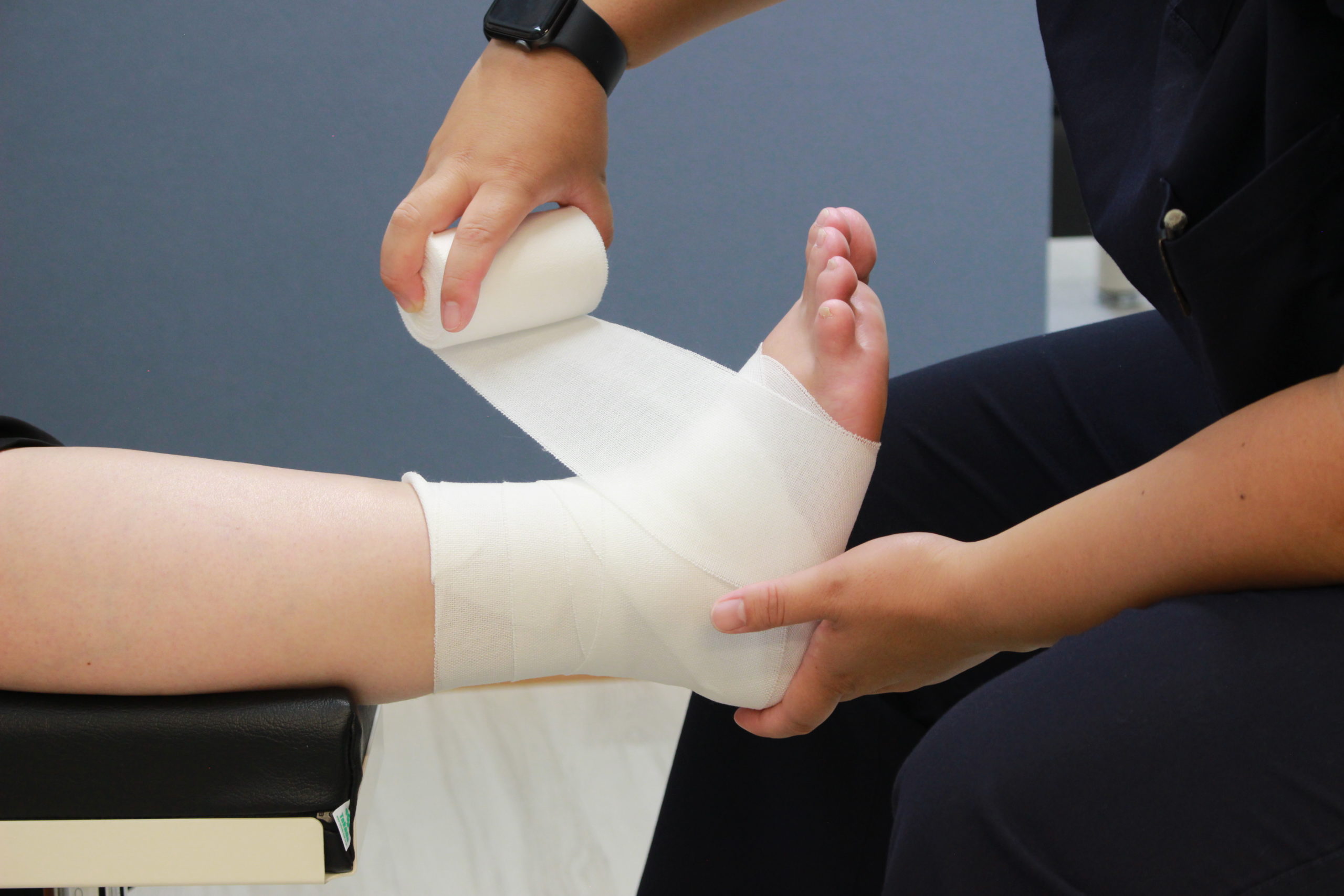 包帯や固定材、テーピング、最新医療機器を用いて施術を行っています。